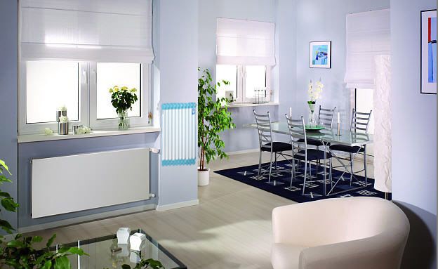 另外還有一種帶對流片的板型暖氣片。它的結構弱點和鋼串片暖氣片一樣,它只是在串片的外面加了一層裝飾“板”,把弱點掩蓋了起來。但這和鑄鐵暖氣片加裝“暖氣罩”一樣,只解決了表面問題,無法治本。清洗這類暖氣片的唯一方法和串片式暖氣片一樣:打開頂罩,以水澆之——既不方便、也不衛生、當然更不能徹底清除暖氣片上的污垢了。